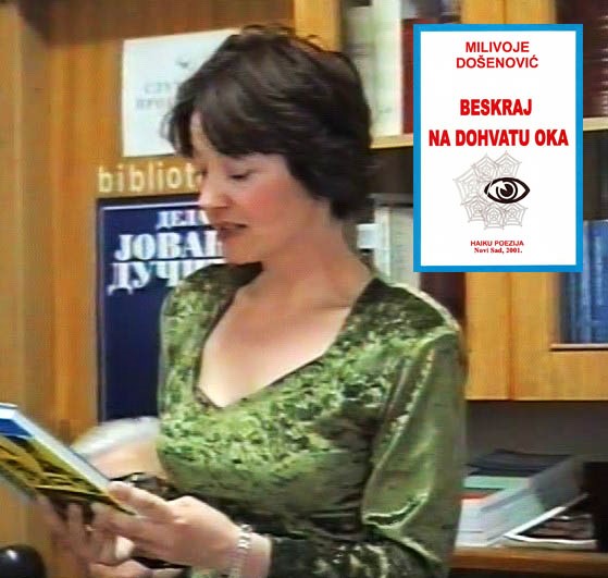 Glumci Srpskog narodnog pozorišta iz Novog Sada - nadahnuto su čitali izabrane stihove iz knjige: "Beskraj na dohvatu oka" (zbirke haiku poezije) autora dr Milivoja Došenovića (haiđina). Snimci: Aleksandar D. Agić sa novosadske "TV Kanal 9" iz 2001. godine. Promocija u velikoj sali Gradske biblioteke Novog Sada.