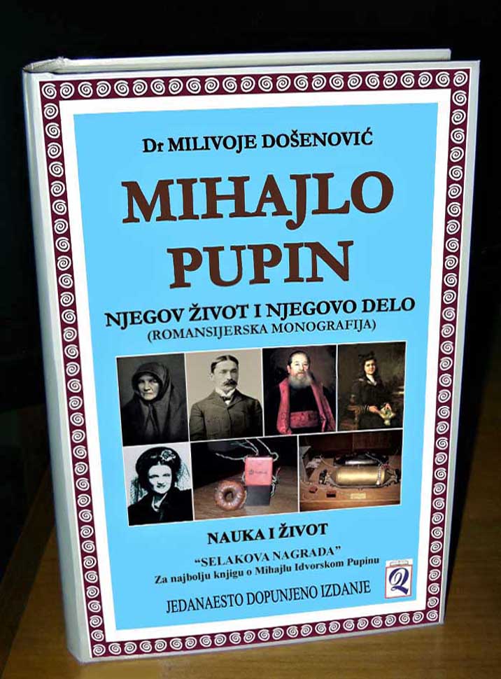 Kapitalno kniževno i naučno delo: "MIHAJLO PUPIN - njegov život i njegovo delo" (romansijerska monografija), autora dr Milivoja Došenovića, književnika i redovnog člana Društva književnika Vojvodine, koji je dobio prestižnu "SELAKOVU NAGRADU" za najbolju knjigu o Mihajlu Idvorskom Pupinu u 2014. godini. Izdavačka kuća "Domla-Publishing" iz Novog Sada, zbog zahteva brojnih čitalaca iz Republike Srbije i regiona, objavila je i publicirala 11. dopunjeno štampano izdanje u punom koloru i na najkvalitetnijem papiru kunstdruk 150-gramski, B-5 formata sa obimom knjige od 456 stranica u luksuznom tvrdom povezu. Recenzent knjige je prof. dr Zoran Lovreković (1961-), doktor nauka informacionih tehnologija, Univerzitet u Novom Sadu.