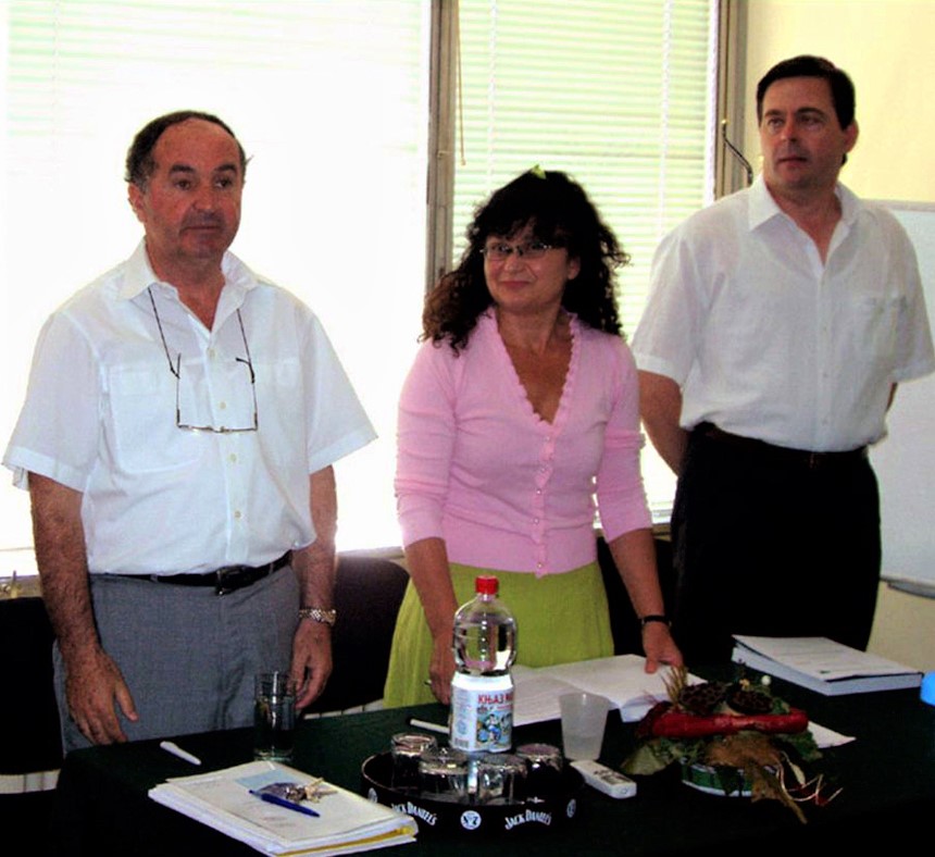 Komisija za odbranu magistarske teze, magistranta Milivoja Došenovića, sleva: prof. dr Ratko Dunđerović psiholog (Katedra za psihologiju Fakulteta za menadžment u Novom Sadu), prof. dr Milica Andevski, pedagog i član komisije (Katedra za pedagogiju Filozofskog fakulteta u Novom Sadu), i skroz desno: mentor prof. dr Zoran Lovreković, doktor nauka informacionih tehnologija (Katedra za informatiku na Fakultetu za menadžment F@M Novi Sad). Snimak: Aleksandar D. Agić, novosadska "TV Kanal 9", u prostoriji F@M, Novi Sad - 2005. godine.