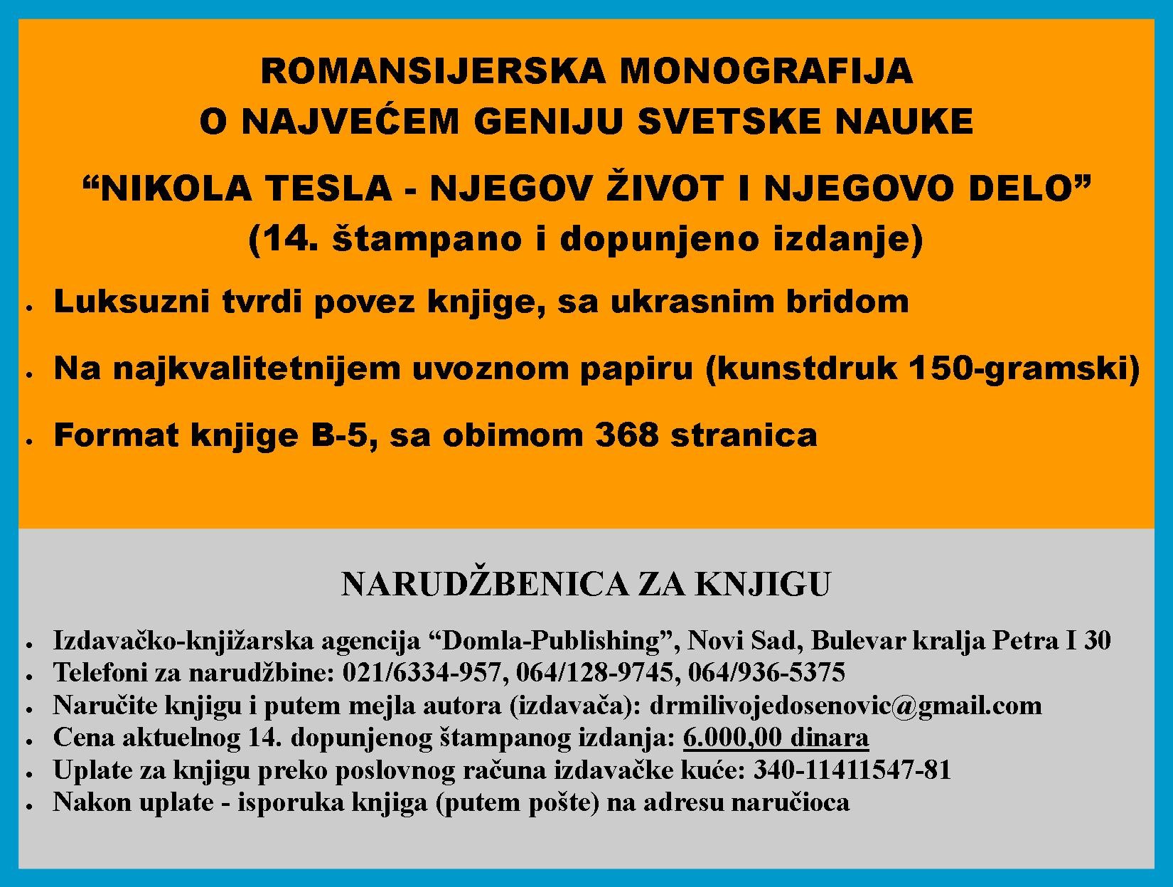 Izvod iz ranijih štampanih izdanja knjige: "MIHAJLO PUPIN - NJEGOV ŽIVOT I NJEGOVO DELO" (romansijerska monografija), u luksuznom tvrdom povezu, autora dr Milivoja Došenovića, i na slici desno: recenzent knjige prof. dr Zoran Lovreković (1961-), doktor nauka informacionih tehnologija, Univerzitet u Novom Sadu.