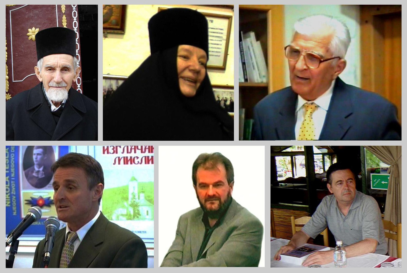 Slike, gornji red sleva: arhimandrit Teodor (Suvajdžić), duhovnik sremskog manastira Ravanica (1922-2008), igumanija Anastasija (Popović) manastirska mati sremske Ravanice u Vrdniku (1945-2022), akademik prof. dr Mihailo Bajić, neurofiziolog i eks dekan Medicinskog fakulteta u Novom Sadu (1928-). Donji red, sleva: prof. dr Radovan Čokorilo (1949-), pedagog i psiholog Univerziteta u Novom Sadu, prof. dr Željko Vučković (1960-), doktor bibliotečko-socioloških nauka, eks dekan Pedagoškog fakulteta u Somboru, Univerzitet u Novom Sadu, prof. dr Zoran Lovreković (1961-), doktor nauka informacionih tehnologija, Univerzitet u Novom Sadu.