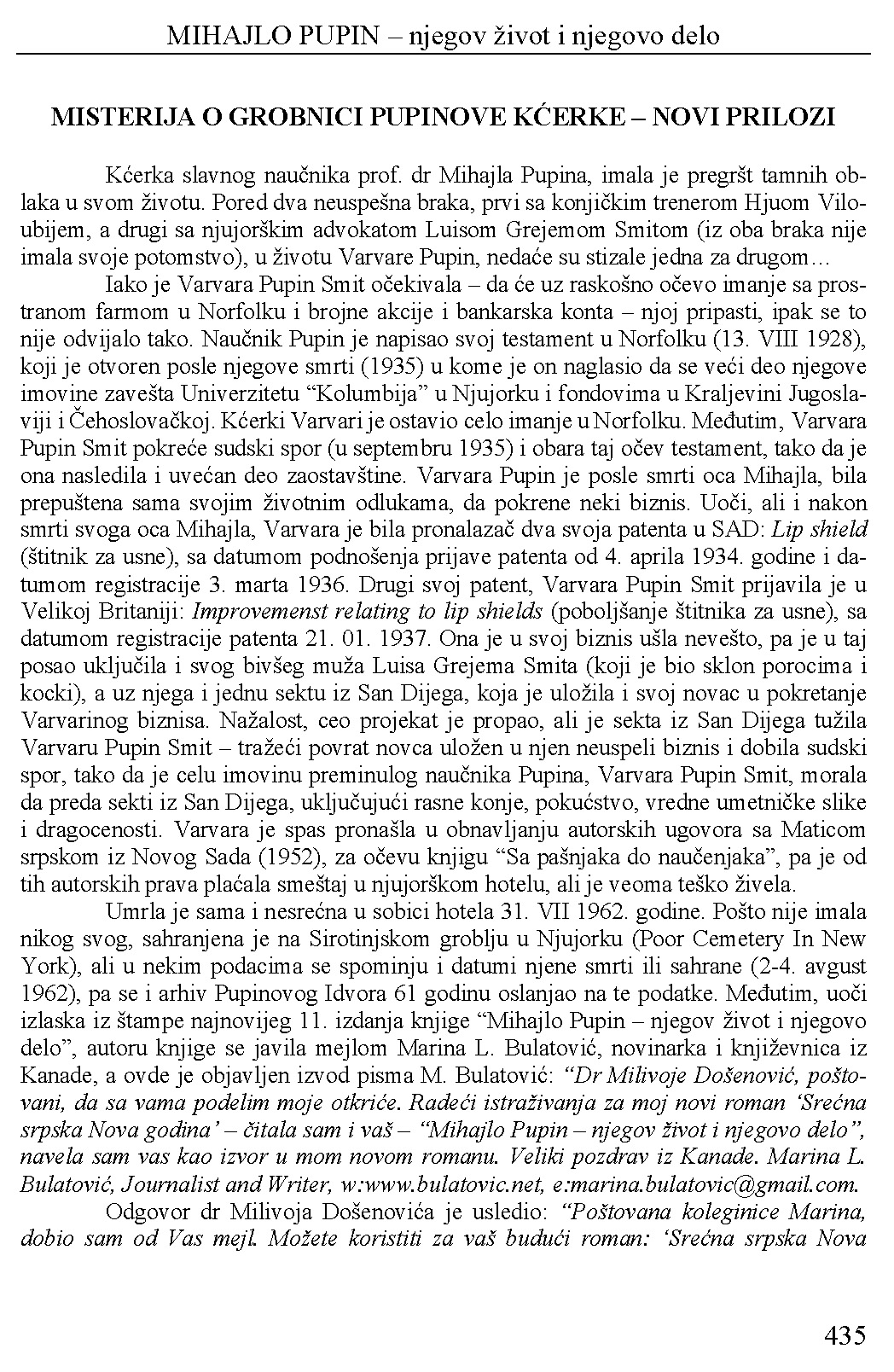 "Selakova nagrada" za NAJBOLJU KNJIGU o naučniku Mihajlu Idvorskom Pupinu u 2014. godini, zvanično je pripala dr Milivoju Došenoviću, književniku iz Novog Sada i redovnom članu Društva književnika Vojvodine.