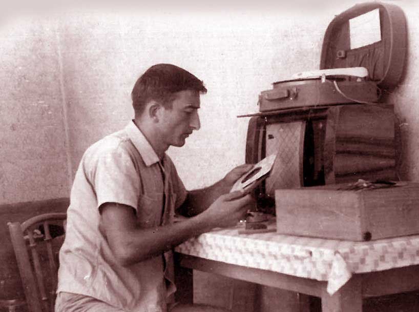 Marko Kurilić, bio je nekadašnji prvi menadžer novogajdobranskih muzičkih bendova VIS "Dobosako" i VIS "Kamikaze", uručio je autoru knjige: "Nova Gajdobra - u ravnici Bačke", dr Milivoju Došenoviću, još nekoliko arhivskih slika da ih objavi u ovoj knjizi. Na slici: Marko Kurilić, pored svog prvog radija "tesla" i gramofona sa singl-pločama iz toga vremena (snimak napravljen na hodniku njegove kuće u Novoj Gajdobri iz 1963. godine).
