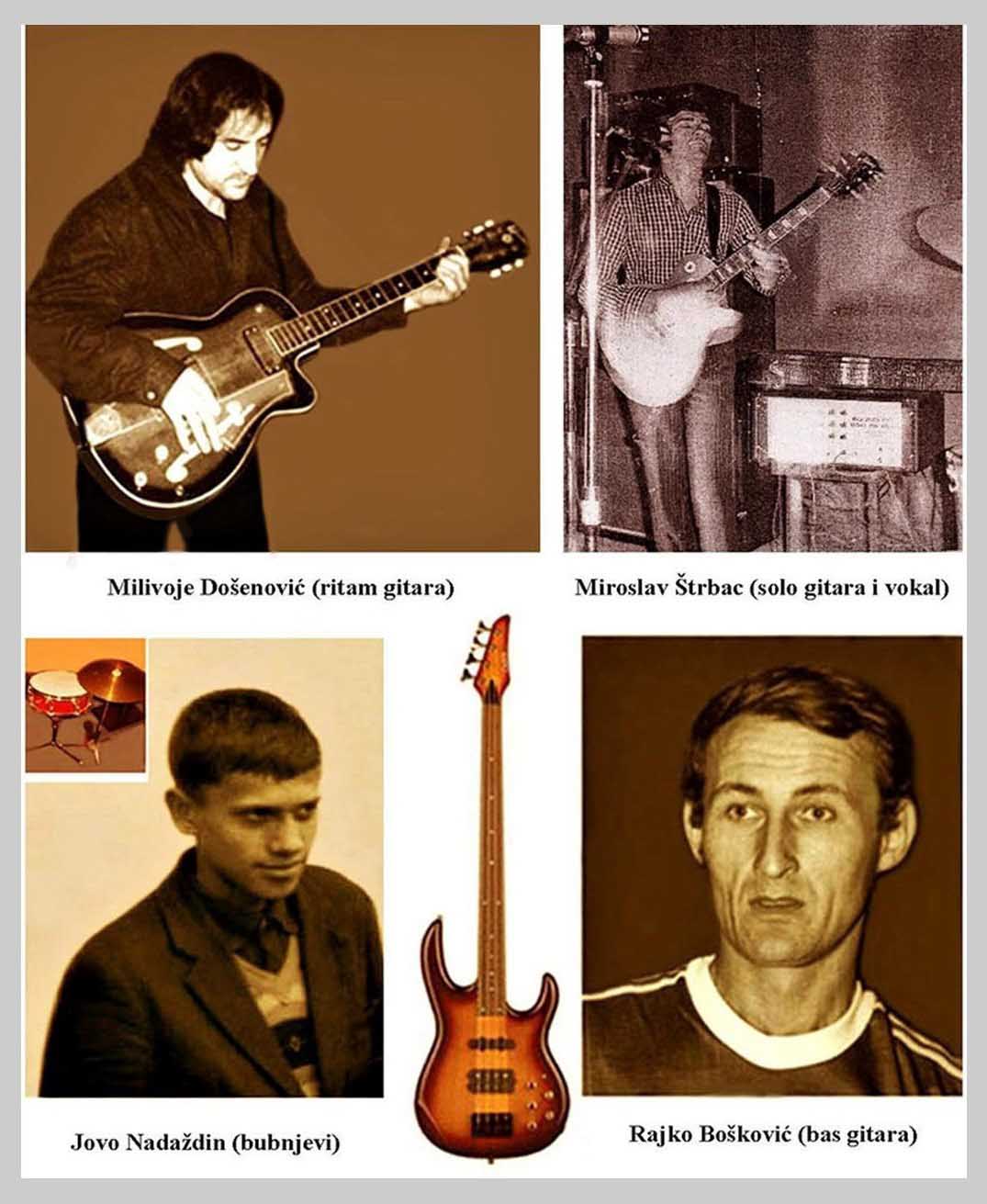 VIS "DOBOSAKO" - Nova Gajdobra, na slici sleva: Branko Kovačević, Mirko Sabljić, Milivoje Došenović i Rajko Bošković (snimak: menadžer novogajdobranskog benda Marko Kurilić, prvi dani proleća, Nova Gajdobra, 1967). Autor ove knjige dr Milivoje Došenović, posebno se zahvaljuje Marku Kuriliću, menadžeru benda, koji je napravio nezaboravne i istorijske snimke VIS "Dobosako" u Novoj Gajdobri, u rano proleće 1967. godine.